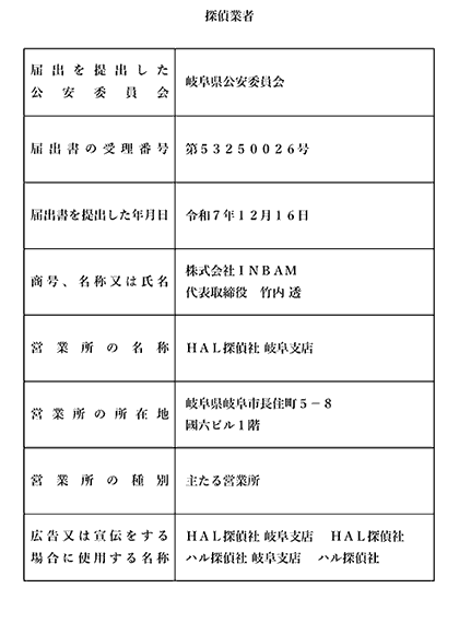 岐阜県で探偵をお探しの方は、安心と信頼のHAL探偵社にお任せください。当探偵社の料金体系は、インターネット広告業界出身の弊社代表が、広告業界で培ったノウハウを元に、効率よく広告を運用する事で、探偵社の経費の大半を占める広告費を徹底カット!