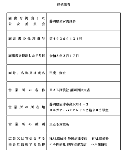 静岡沼津で探偵をお探しの方は、安心と信頼のHAL探偵社にお任せください。当探偵社の料金体系は、インターネット広告業界出身の弊社代表が、広告業界で培ったノウハウを元に、効率よく広告を運用する事で、探偵社の経費の大半を占める広告費を徹底カット!