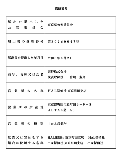 東京町田で探偵をお探しの方は、安心と信頼のHAL探偵社にお任せください。当探偵社の料金体系は、インターネット広告業界出身の弊社代表が、広告業界で培ったノウハウを元に、効率よく広告を運用する事で、探偵社の経費の大半を占める広告費を徹底カット! このため調査員1名につき1時間7,000円(税込)のシンプルかつ業界最安値の料金プランを実現しました。